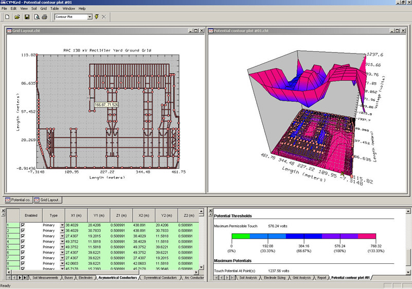 You can calculate the earth resistance, ground potential, touch and step voltage, and examine them with 2D and 3D visuals with strong graphical capabilities.