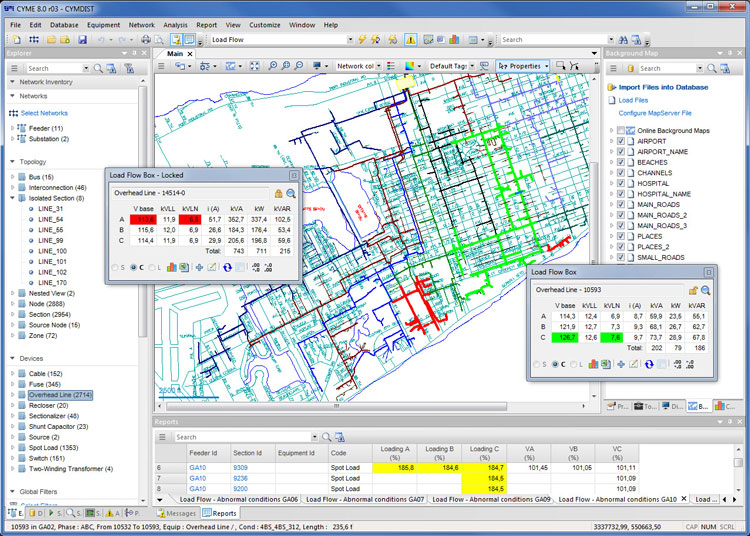 With the CYME Geographic Overlay module, digital maps can be displayed in layers along with the network model.